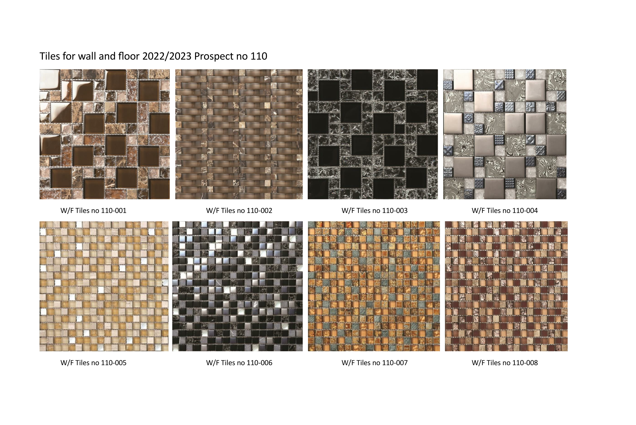 Amplia colección de baldosas para paredes y suelos. Mosaicos de vidrio, metal, piedra natural y materiales compuestos de alta calidad directamente desde China.